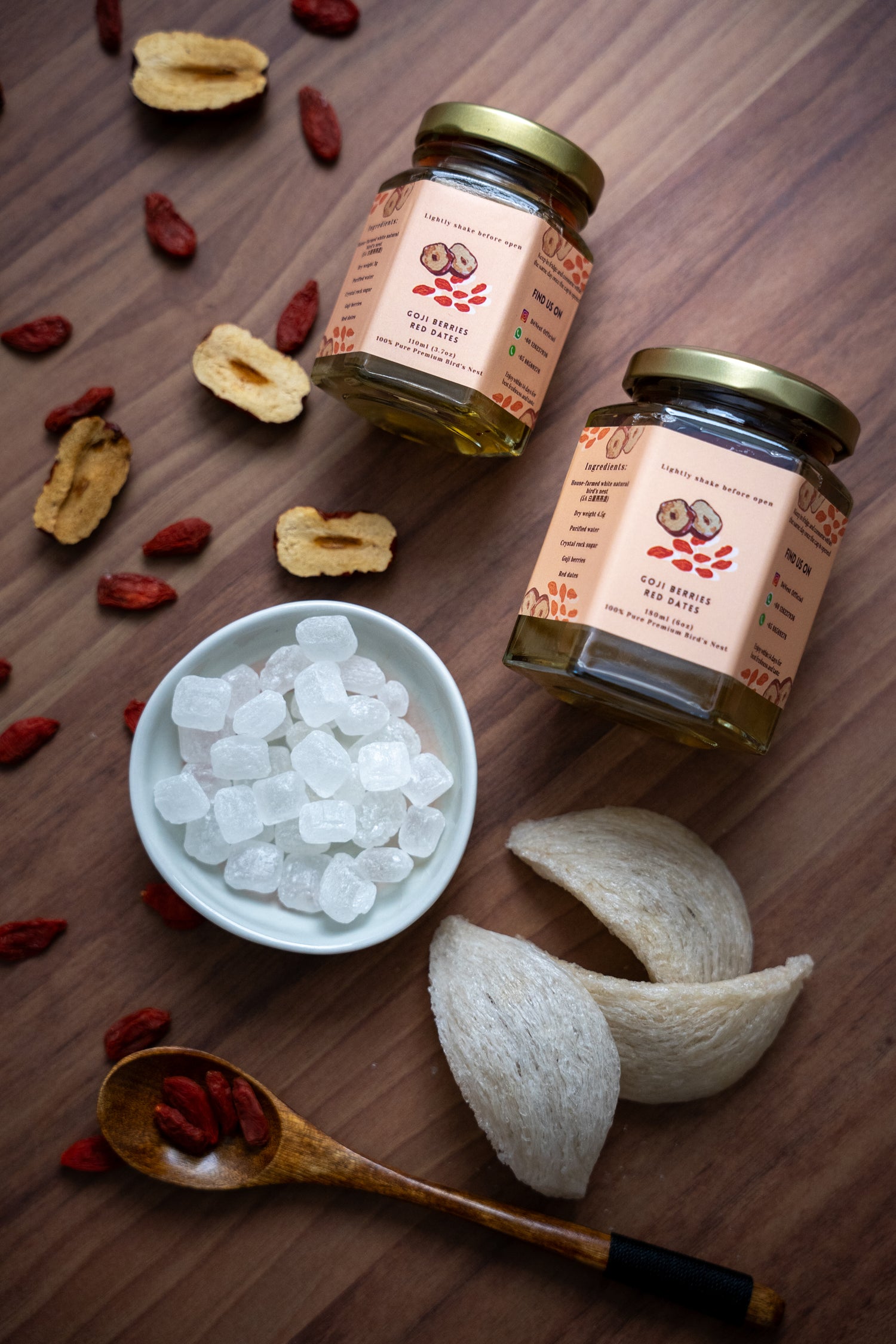 Embrace holistic wellness with our Goji Berries & Red Dates flavour — a nourishing infusion that pairs the natural richness of bird’s nest with two time-honoured superfoods.