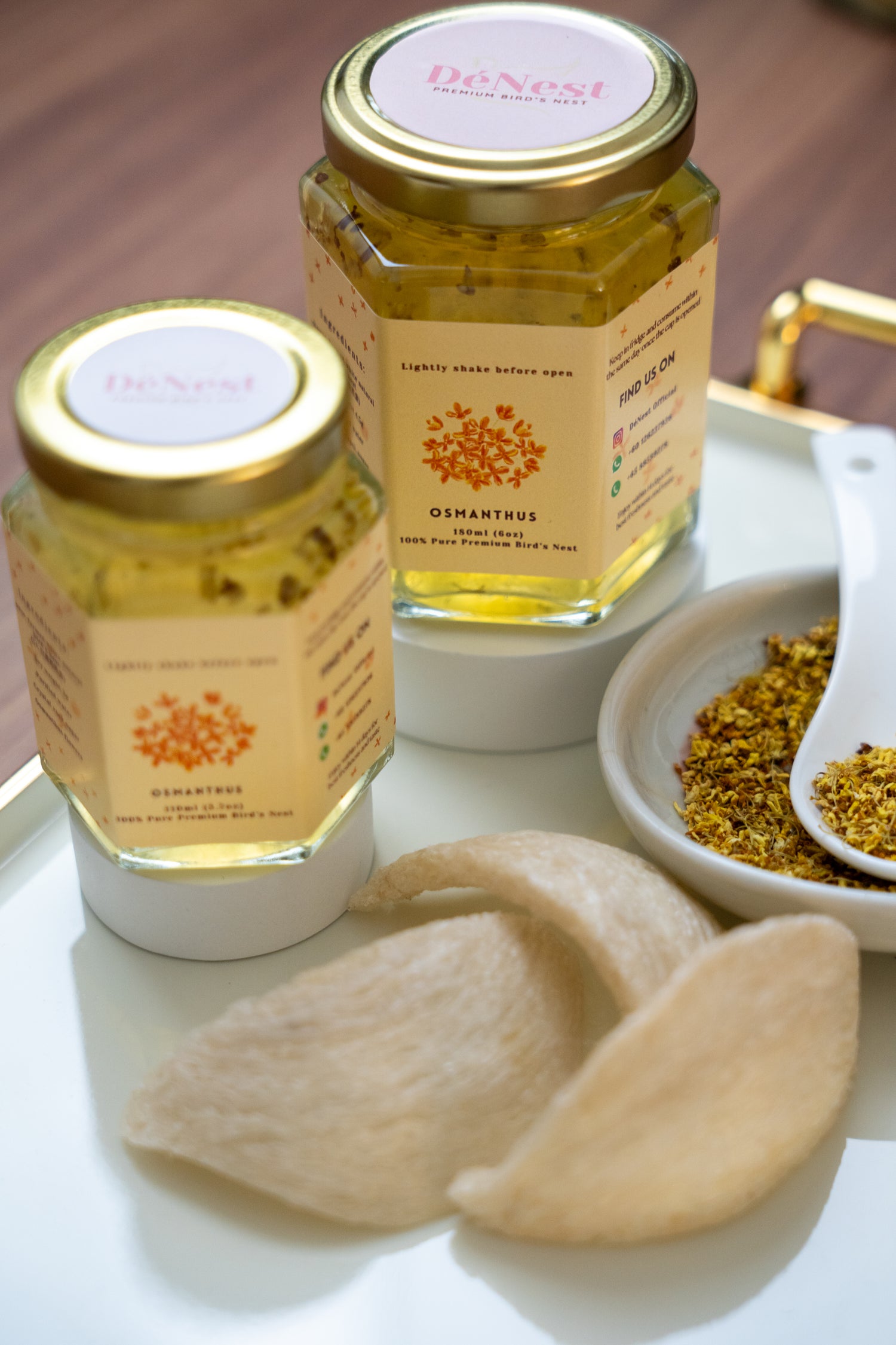 Delight in the floral elegance of our Osmanthus flavour — where the gentle aroma of golden osmanthus blossoms meets the nourishing purity of bird’s nest.