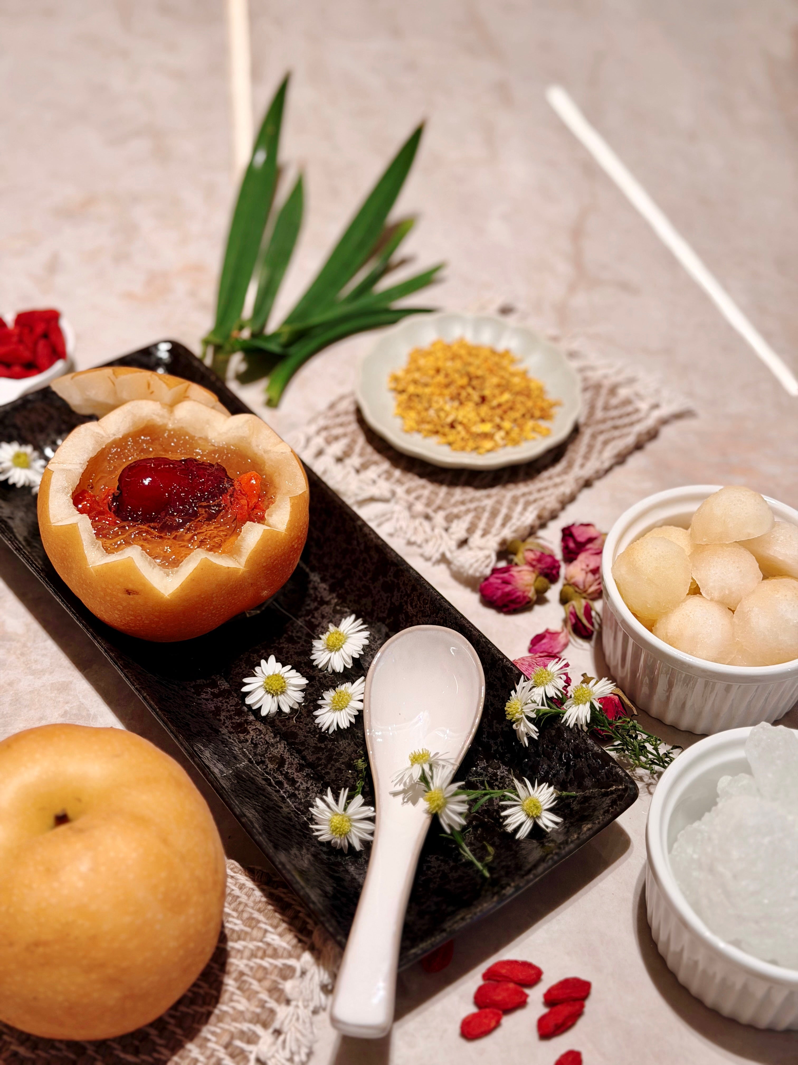 Red dates replenish and invigorate, while goji berries are prized for boosting vitality and enhancing complexion. Together, they create a gently sweet, soothing blend that restores balance and radiance from within.